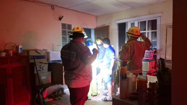 และจากการสอบถาม ลูกชายเจ้าของบ้านหลังดังกล่าว อายุ 22 ปี บอกเล่าว่า ตอนเเรกตนนอนอยู่บนชั้นที่สอง นอนเล่นมือถือแต่ก่อนที่จะขึ้นไปนอนเล่นที่ชั้นสองตนต้มน้ำเอาไว้โดยใช้กาต้มน้ำร้อนไฟฟ้า แล้วก่อนเกิดเหตุไฟดับทั้งบ้านแล้วตนก็คิดว่าเด๋วไฟก็ติดขึ้นมาเองตนก็ยังไม่รู้สึกแตกตื่น แล้วสักพักก็ได้ยินเสียงดังตึง เหมือนเสียงของตกหรือไม่ก็ระเบิดตนก็เลยเปิดประตูออกมาดูก็เห็นเป็นฝุ่นตลบไปทั่วตนก็เลยคิดว่าอาจจะเป็นเพดาลหล่น แต่พอเดินลงไปแล้วควันมันหนาขึ้นเรื่อยๆตนก็เลยรีบวิ่งไปที่ห้องด้านหน้าตรงที่มีระเบียงแล้วตนก็ปีนออกมา แล้วก็โทรเรียกกู้ภัย ตนคาดว่าต้นเพลิงมาจากบริเวณหลังบ้านตรงที่ตนเสียบกาน้ำร้อนเอาไว้ ส่วนตอนที่เกิดเหตุนั้นตนอยู่คนเดียว พ่อ แม่ ไปทำงานกันหมด ส่วนพี่ชายก็ไปมหาลัย