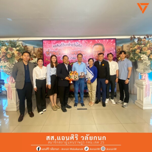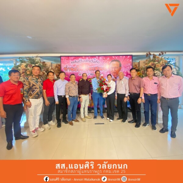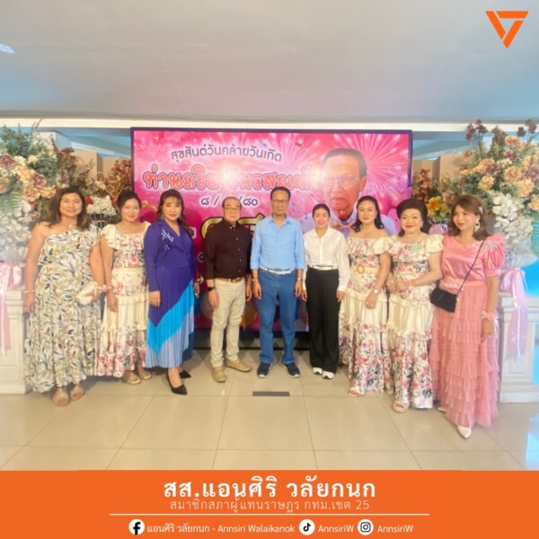 สส.แอน เเละสส.พรรคประชาชน มาร่วมแสดงความยินดีในงานวันคล้ายวันเกิดของ ท่านถวิล ไพรสณฑ์ อดีตสมาชิกสภาผู้แทนราษฎร ผู้มากด้วยประสบการณ์และคุณูปการต่อประเทศชาติ ณ ร้าน ซ้งโภชนา บรรยากาศเป็นไปอย่างอบอุ่น เรียบง่าย และเต็มไปด้วยมิตรภาพ มีบุคคลสำคัญมาร่วมแสดงความยินดีและอวยพรในโอกาสพิเศษนี้