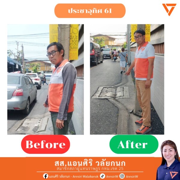 ✅ ประสานซ่อมแซมฝาท่อบริเวณ ประชาอุทิศ 61 เรียบร้อยแล้ว เพื่อแก้ไขความเสื่อมสภาพ และป้องกันการเกิดอุบัติเหตุ