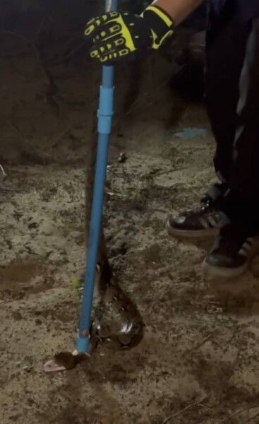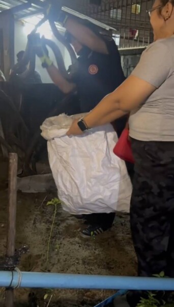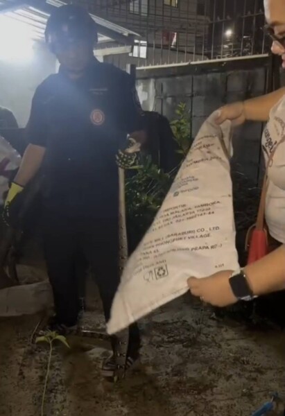 เป็นสวัตว์เลื้อยคลานประเภทงูเหลือม ความยาว 2.50 เมตร ดำเนินการจับใส่กระสอบนำไปมอบให้กับเจ้าหน้าที่สถานีดับเพลิงราษฎร์บูรณะ เป็นที่เรียบร้อย