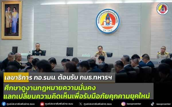 เลขาธิการ กอ.รมน. ต้อนรับ กมธ.ทหารฯ วุฒิสภา ศึกษาดูงานกฎหมายความมั่นคง แลกเปลี่ยนความคิดเห็นเพื่อรับมือภัยคุกคามยุคใหม่