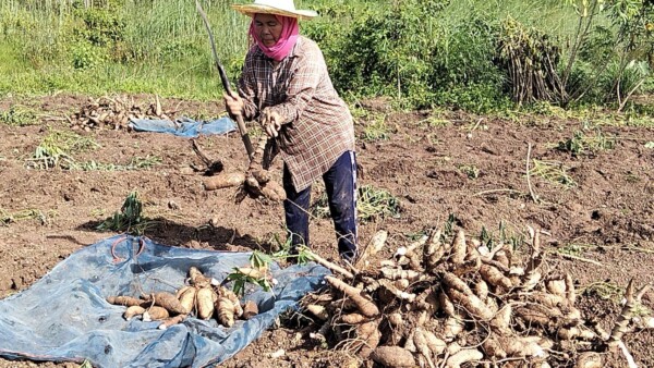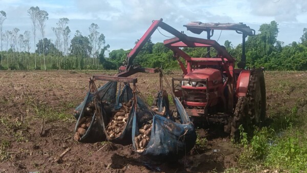 วันที่ 19 กย.68 ผู้สื่อข่าวรายงานว่าเกษตรกรชาวไร่มันสำปะหลังต.วังตะเคียน อ.กบินทร์บุรี จ.ปราจีนบุรี เดินลุยโคลนตมเก็บหัวมันสำปะหลังในไร่ หลังจากปล่อยทิ้งแช่น้ำ2วันไม่สามารถเก็บหัวมันฯออกจากไร่ส่งขายให้กับลานรับซื้อมันฯได้ เนื่องจากเกิดฝนตกหนักติดต่อกันมา2วันจึงปล่อยหัวมันแช่ดินเปียกน้ำในไร่ เมื่อคืนเกิดฝนตกหนักลงมาอีกทั้งคืน จึงตัดสินใจใช้แรงงานเดินลุยดินตมโคลนเก็บหัวมันฯที่ไถคาไว้2วันที่ผ่านมา