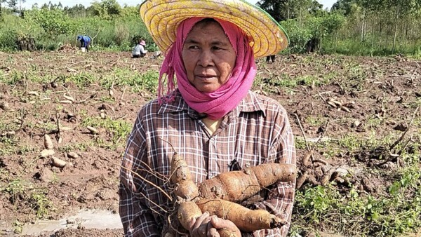 นางสำอาง ผันนรา อายุ 59 ปี ชาวตำบลวังตะเคียน กล่าวว่าปลูกมันสำปะหลังพันธุ์เกษตรศาสตร์ไว้ 9 ไร่ได้ไถหัวมันเมื่อ 3 วันที่ผ่านมา หลังจากไถเก็บหัวมันได้ 1 เที่ยวรถ 10 ล้อ ขายได้ประมาณกิโลกรัมละ 2 บาท ได้หยุดเก็บหัวมันฯออกจากไร่เนื่องจากฝนตกหนัก และได้ปล่อยหัวมันแช่น้ำฝน 2 คืนพื้นที่ไร่เป็นดินร่วนระบายน้ำได้ดี แต่ไม่สามารถนำรถบรรทุกเข้าในไร่ได้หากปล่อยทิ้งไว้อีก 2 วันหัวมันจะเน่าเสีย จึงต้องใช้แรงงานคนเดินลุยตมโคลนสับหัวมัน แล้วใช้รถไถทยอยออกจากสวนมาใส่รถบรรทุกด้านนอก วันนี้น่าจะเก็บหัวมันฯขายหนีฝนหมดเย็นนี้