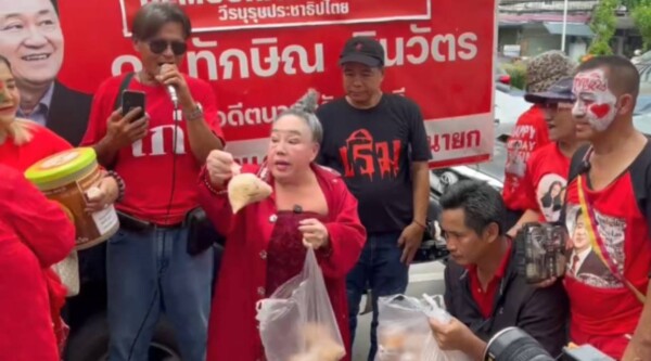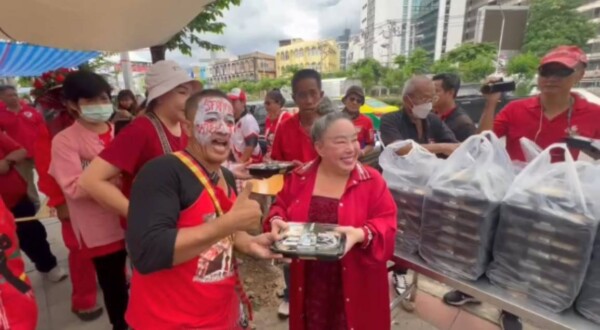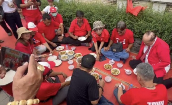 “คนเสื้อแดง” รวมพลล้อมวงกินแกงส้ม-ต้มยำหนู หน้าคุกคลองเปรม ให้กำลังใจ “ทักษิณ” ด้าน “ลีน่าจัง” โผล่ให้กำลังใจ แจกยำวุ้นเส้น ให้มวลชนได้กิน