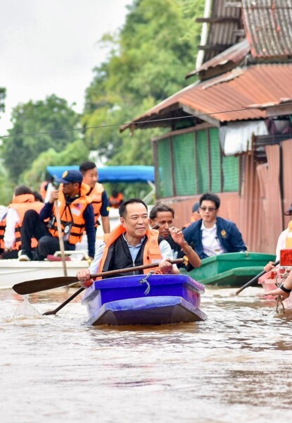 ต่อทา นายกฯ ลงไปพายเรือ ของชาวบ้าน มอบถุงยังชีพและเยี่ยมผู้ประสบภัยที่อยู่ในบ้านที่ถูกน้ำท่วม