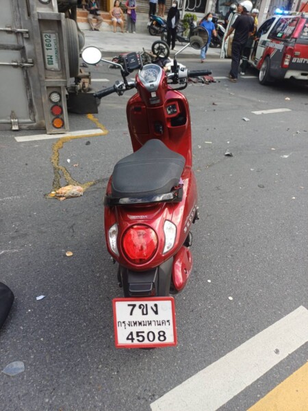ชื่อ น.ส.วาสนา (ขอสงวนนามสกุล) อายุ 44 ปี และรถจักรยานยนต์ ยี่ห้อฮอนด้า สกู๊ปปี้ สีแดง ทะเบียน กรุงเทพมหานคร สภาพพลิกคว่ำ น.ส.อทิตยา (ขอสงวนนามสกุล) อายุ 26 ปี ได้รับบาดเจ็บ นอกจากนี้ ยังมีผู้ได้รับบาดเจ็บอีกรวมทั้งหมด 7 ราย อาสาฯมูลนิธิสยามรวมใจ(ปู่อินทร์) ช่วยกันนำส่งโรงพยาบาลเพชรเวช