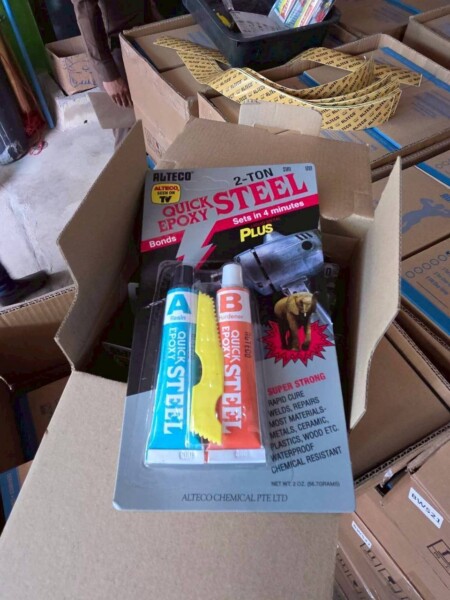 จากการตรวจค้น เจ้าหน้าที่ตำรวจได้ตรวจยึดของกลางรวมทั้งสิ้น 21,894 ชิ้น มูลค่าความเสียหายกว่า 1,500,000 บาท ประกอบด้วย กาววิทยาศาสตร์อีพ็อกซี่ (กาวตราช้าง) ปลอมเครื่องหมายการค้า ALTECO และกล่อง/บรรจุภัณฑ์ที่ปลอมเครื่องหมายการค้า ALTECO