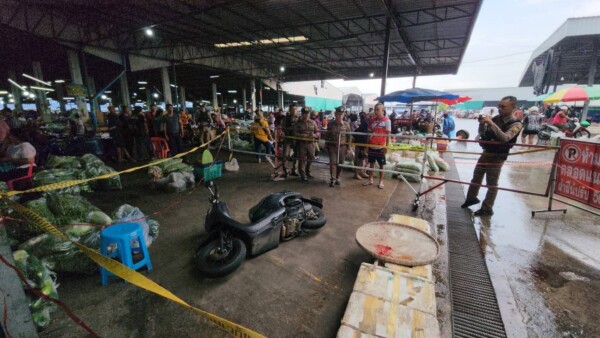 ที่เกิดเหตุเป็นโซนตลาดชาวไร่ ภายในตลาดกลางการเกษตรหนองบ้วย พบรถจักรยานยนต์ Honda Scoopy I สีดำหมายเลขทะเบียน 1 กน 5287 จอดล้มอยู่ ข้างรถพบรองเท้าแตะสีขาว 1 คู่ และกองเลือดขนาดใหญ่