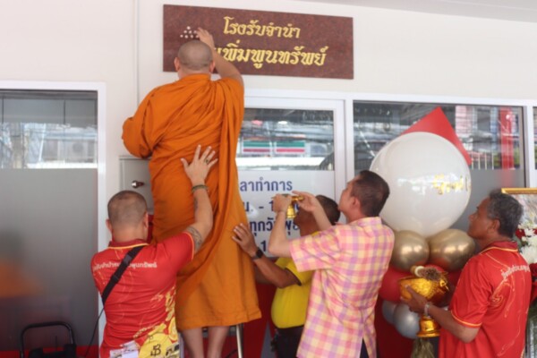 ซึ่งทางเจ้าภาพได้ถวายภัตตาหารเพลแด่พระสงฆ์เพื่อความเป็นสิริมงคล โดยได้นิมนต์พระสงฆ์จากวัดสลุด ต.บางพลีใหญ่ อ.บางพลี สมุทรปราการ มาประกอบพิธีเจริญชัยมงคลคาถาและเจริญพระพุทธมนต์ พร้อมทั้ง เจิมแป้งปิดทองโรงรับจำนำเพื่อความเป็นสิริมงคลแก่ครอบครัวกุลรัตนจินดา