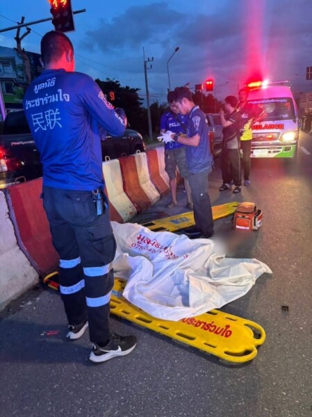 เจ้าหน้าที่มูลนิธิประชาร่วมใจ เข้าตรวจสอบที่เกิดเหตุ พบผู้ขับขี่รถจักรยานยนต์ เพศชาย เสียชีวิตในที่เกิดเหตุ 1 ราย (อยู่ระหว่างตรวจสอบชื่อที่อยู่)