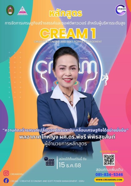 หรือดูรายละเอียดเพิ่มเติมได้ที่เว็บไซต์ www.creamssru.com