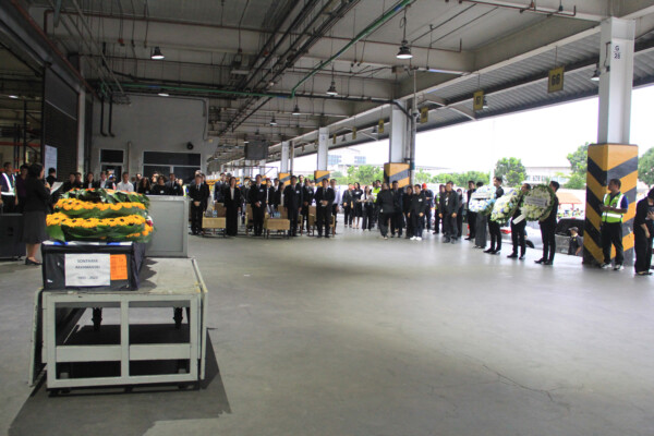 จากนั้น รมว.แรงงาน พร้อมคณะ ได้วางพวงหรีดไว้อาลัยแด่ผู้วายชนม์ และยืนสงบนิ่งเป็นเวลา 1 นาที ซึ่งบรรยากาศการรับร่างแรงงานไทยในวันนี้เป็นไปด้วยความเศร้าโศก ก่อนที่จะมีการนำร่างของนายสนธยา ขึ้นรถเพื่อเดินทางกลับสู่อ้อมอกของครอบครัวในจังหวัดหนองบัวลำภู ต่อไป