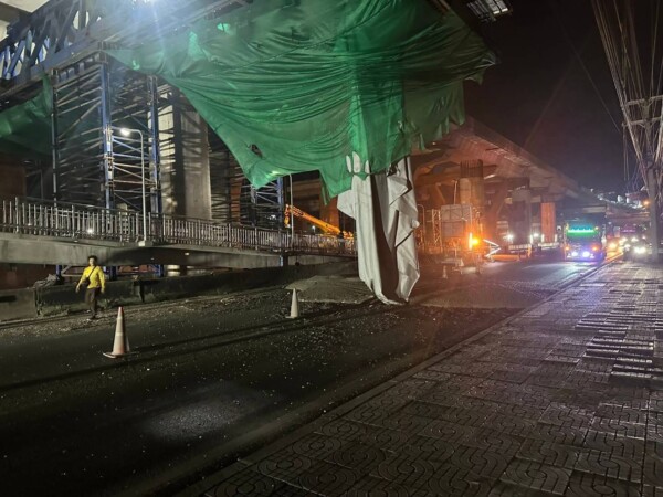 แบบปูนก่อสร้างทางยกระดับพระราม 2 หน้าตลาดทะเลไทย บริเวณ จุดกลับรถมอเตอร์ไซค์ ทรุดตัว น้ำปูนไหลลงมาท่วมถนนขาเข้า กทม. ส่งผลให้รถสัญจรติดขัด ไม่สามารถสัญจรไปมาได้ ที่สมุทรสาคร