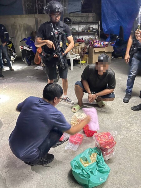 ต่อมาวันที่ 28 ตุลาคม 2568 เวลาประมาณ 20.20น. ชุดสืบสวนนครบาล 8 ได้เฝ้าติดตามพฤติกรรม ของผู้ใช้รถยนต์คันดังกล่าว จนกระทั่งพบของนายเพชรตรากรณ์ฯ อายุ 36 ปี ขับรถยนต์เข้ามาที่เกิดเหตุ จึงเชื่อได้ว่าอาจมีสิ่งของผิดกฎหมายซุกซ่อนอยู่ภายในรถยนต์ คันดังกล่าว จึงได้วางแผนการตรวจค้น จนกระทั่งพบเห็นนายเพชรตรากรณ์ ขับรถเข้ามา โดยมีนายกรธวัชฯ อายุ 54 ปี มาเปิดรถยนต์จึงได้แสดงตัวเป็นเจ้าหน้าที่ตำรวจ และเรียกเพื่อทำการตรวจค้น ผลการตรวจค้นรถยนต์ พบยาไอซ์ จำนวน 50 ถุง น้ำหนักประมาณ 50 กิโลกรัม และตรวจยึดโทรศัพท์มือถือจำนวน 4 เครื่อง เจ้าหน้าที่ตำรวจชุดจับกุมจึงแจ้งข้อกล่าวหา “ร่วมกันจำหน่ายยาเสพติดให้โทษประเภท1 (ยาไอซ์หรือเมทแอมเฟตามีน) โดยมีไว้เพื่อจำหน่าย อันเป็นการกระทำเพื่อการค้า เป็นการก่อให้เกิดการแพร่กระจายในกลุ่มประชาชน เป็นการทำให้เกิดผลกระทบต่อความมั่นคงของรัฐหรือความปลอดภัยของประชาชนทั่วไป” และควบคุมผู้ต้องหา พร้อมของกลางกลับไปยังกองกำกับการสืบสวนนครบาล 8 เพื่อจัดทำบันทึกจับกุม