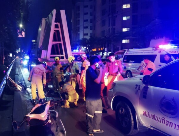 สอบถามนายนที เจเถือน อายุ 39 ปีคนขับรถพ่วง ให้การว่า ขณะขับรถพ่วงบรรทุกแผ่นคอนกรีตสำเร็จรูป น้ำหนักกว่า 18 ตัน ไปส่งที่ไซค์งานก่อสร้างย่านดินแดง ระหว่างรถวิ่งบนถนนในช่องทางเลนซ้าย เมื่อมาถึงใกล้ปากซอยประชาชื่น 39 จู่ๆยินเสียงดังสนั่นช่วงพ่วงท้ายรถ จึงได้ชลอรถจอดเมื่อตรวจสอบก็พบว่ามีรถเก๋ง สีขาว พุ่งเสยท้ายอย่างแรง ทำให้มีผู้บาดเจ็บและผู้เสียชีวิตติดคาอยู่ภายในยานพาหนะ