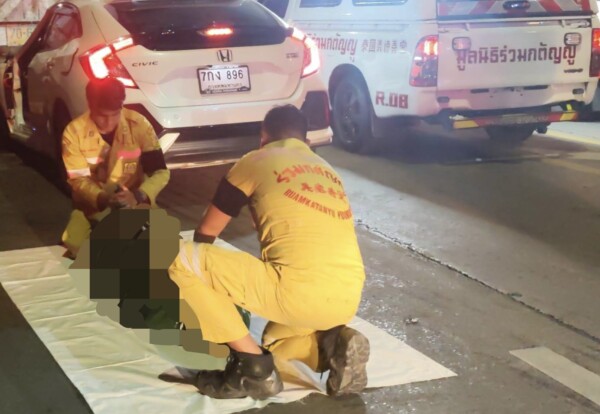 ที่เกิดเหตุเป็นถนน 2 เลน มุ่งหน้าแยกประชานิเวศน์ พบรถพ่วง 18 ล้อบรรทุกแผ่นคอนกรีตสำเร็จรูป 18 ตัน หมายเลขทะเบียน 70-6827 สระบุรี และทะเบียนพ่วงท้าย 70-6700 สระบุรี สภาพท้ายพ่วงถูกรถยนต์ ยี่ห้อฮอนด้า ซีวิค สีขาว ทะเบียน 7กง8xxกทม.สภาพหน้ารถพังยับเยิน ชิ้นส่วนหน้ารถกระจายเกลื่อนถนน จากการตรวจสอบภายในรถพบผู้เสียชีวิต 1 รายเป็นหญิง ทราบชื่อ น.ส.แอน(ชาวลาว)อายุ 21 ปี สภาพสวมชุดเดรส สีดำลายขาว มีบาดแผลกระโหลกศีรษะแตก นั่งเบาะด้านหน้าซ้าย ส่วนผู้ขับขี่เป็นชายไทย อายุประมาณ 40 ปีมีบาดแผลศีรษะแตกอาการสาหัส และยังมีหญิงสาวชาวลาว ที่นั่งอยู่เบาะด้านหลังอีก 2 รายได้รับบาดเจ็บเช่นกัน จึงนำตัวส่ง รพ.เปาโลเกษตร และ รพ.เกษมราฎร์ประชาชื่น