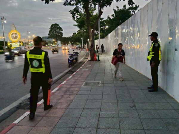 หน้าแรกประชาสัมพันธ์สายตรวจเทศกิจพระนคร อำนวยความสะดวกแก่ประชาชนที่เดินทางมาถวายสักการะพระบรมศพ สมเด็จพระบรมราชชนนีนาทพันปีหลวง บริเวณท้องสนามหลวง