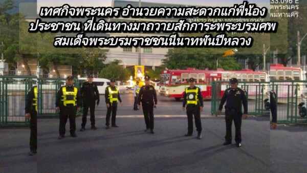 สายตรวจเทศกิจพระนคร อำนวยความสะดวกแก่ประชาชนที่เดินทางมาถวายสักการะพระบรมศพ สมเด็จพระบรมราชชนนีนาทพันปีหลวง