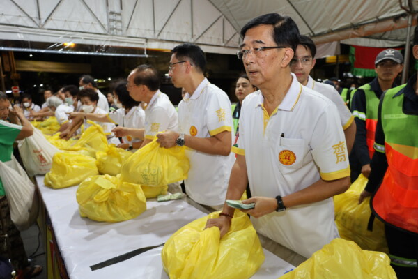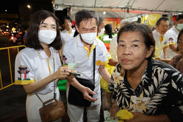 เวลา 18:00 น. คณะเจ้าภาพและกรรมการจัดงานประเพณีงานเจ ได้แจกทานสิ่งของและเงินค่ารถ ให้กับประชาชนผู้ที่ยังขาดแคลนที่มารอรับ กว่า 1,000 ชุด หลังจากนั้น