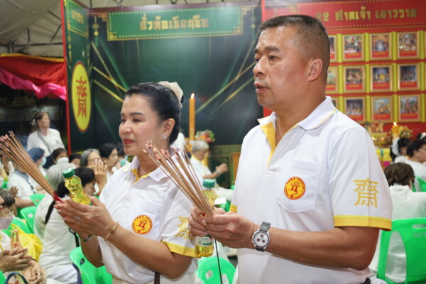 เวลา 16:00 น. คณะเจ้าภาพและกรรมการจัดงานประเพณีงานเจ รวมถึงประชาชนที่ศรัทธาในประเพณี ได้เข้าร่วมประกอบพิธีทางพระสงฆ์จีน จากนั้น