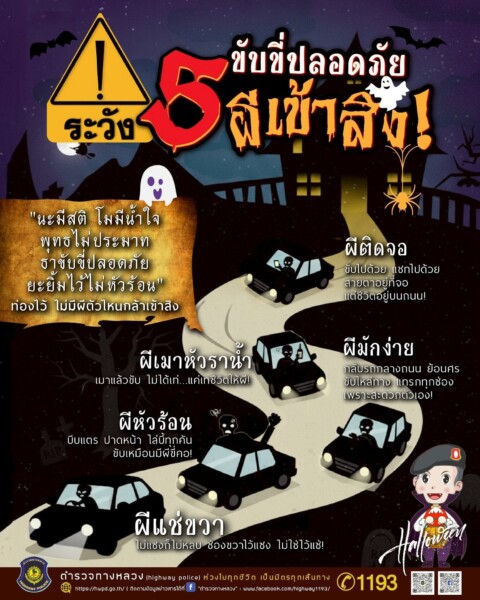 ฮาโลวีน ตำรวจทางหลวงเตือน “ขับขี่ปลอดภัย ระวัง 5 ผีเข้าสิง!”