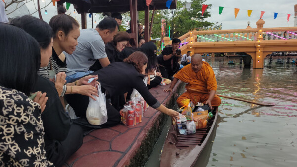 วันที่ 5 พฤศจิกายน 2568 เวลา 07.00 น. ที่บริเวณสระน้ำวิหารหลวงปู่กิ่ม อรรถโกวิทวุฒิคุณ วัดบางพลีใหญ่กลาง ตำบลบางพลีใหญ่ อำเภอบางพลี จังหวัดสมุทรปราการ เจ้าคุณแจ้ “พระวชิรคณาทร” เจ้าอาวาสวัดบางพลีใหญ่กลาง พร้อม พระอาจารย์มหาเสน่ห์ และพระอาจารย์เดช แห่งวัดบางพลีใหญ่กลาง พายเรือรับบิณฑบาตทางน้ำ เนื่องในงานสืบสานวัฒนธรรมประเพณีลอยกระทง วัดบางพลีใหญ่กลาง ประจำปี 2568 โดยมี ดร.วีร์สุดา รุ่งเรือง นายก อบต.บางพลีใหญ่ พ.ต.อ.กรวัฒน์ หันประดิษฐ์ อดีตรอง ผบก.ภ.จว.ชลบุรี นางเจียม รุ่งเรือง ประธาน อสม.ตำบลบางพลีใหญ่ นายแพทย์เสาร์ ปัญจพงษ์ ผู้อำนวยการโรงพยาบาลบางพลี นายธีรพัชญ์ ศรีนาเครือธนัต ผู้อำนวยการโรงเรียนวัดบางพลีใหญ่กลาง ตลอดจน คณะไวยาวักจร คณะกรรมการวัด ทีมแพทย์ พยาบาล จากศูนย์แพทย์ชุมชนวัดบางพลีใหญ่ ช้าราชการตำรวจ สภ.บางพลี อุบาสก อุบาสิกา และคณะครู นักเรียนโรงเรียนวัดบางพลีใหญ่กลาง โรงเรียนบางพลีราษฎร์บำรุง และประชาชนชาวตำบลบางพลีใหญ่ ร่วมทำบุญตักบาตรข้าวสารอาหารแห้งแด่พระสงฆ์