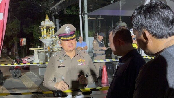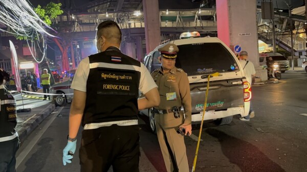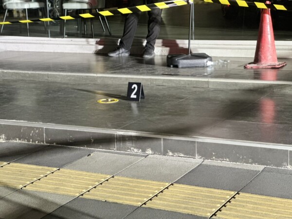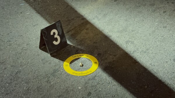ที่เกิดเหตุบริเวณฟุตปาธ พบเพียงกองเลือดและปลอกกระสุนปืนกระจายเกลื่อนพื้นถนน รวม 5 ปลอก เจ้าหน้าที่กองพิสูจน์หลักฐาน(พฐ.)จึงบันทึกรวบรวมที่เกิดเหตุไว้เป็นหลักฐาน
