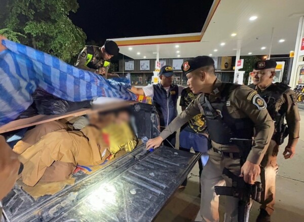 จนกระทั่งมีรถยนต์ต้องสงสัย มีลักษณะกระจกทึบ มีน้ำหนักบรรทุกเกินกว่าปกติ จึงได้สกัดกั้นเละเข้าตรวจสอบ พบนายบุญช่วยฯ แสดงตัวเป็นผู้ขับขี่ และมีคนต่างด้าว นั่งโดยสารอัดมาเต็มในคันรถ จำนวน 10 ราย และท้ายที่กระบะ มีการดัดแปลงนำแผ่นไม้อัดมาวางพาดเพื่อวางสัมภาระที่ด้านบน เพื่อให้ด้านล่างมีช่องสำหรับซุกซ่อนคนต่างด้าวอีก จำนวน 5 ราย