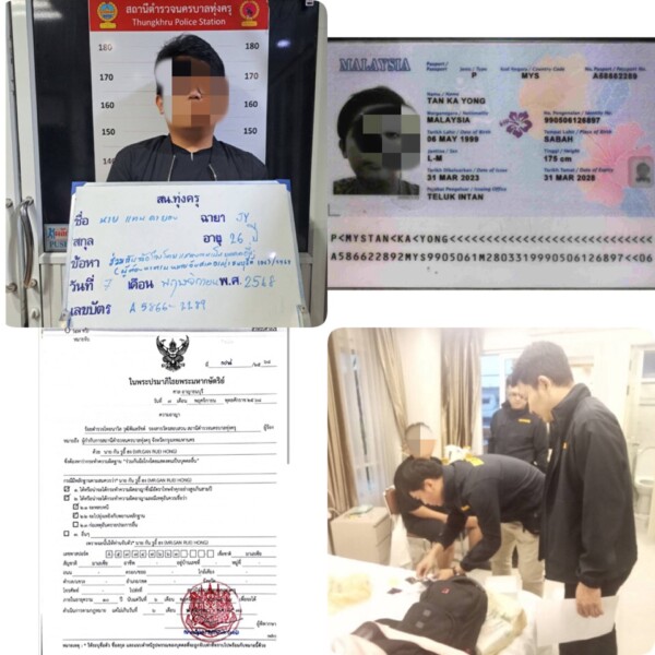 ภายใต้การอำนวยการของ พล.ต.ต.เกียรติกุล สนธิเณร ผบก.น.2 และ พ.ต.อ.ศักดิ์สิทธิ์ มีสวัสดิ์ รอง ผบก.บก.น.2 สั่งการให้พ.ต.อ.ภูวดล อุ่นโพธิ ผกก.สน.ดอนเมือง ประสานกำลังร่วมกับ พ.ต.อ.จุมพล สินศิริพงษ์ ผกก.สน.ทุ่งครุ โดย พ.ต.ท.อำนาจ ฉ่ำชะเอม รอง ผกก.สส.สน.ดอนเมือง พ.ต.ท.อนุพงษ์ อรุณคีรีโรจน์ รอง ผกก.สส.สน.ทุ่งครุ พ.ต.ต.ชยพัทธ์ หีบทอง สว.สส.สน.ดอนเมือง ร.ต.อ.โชคชัย พิณะเวศน์ รอง สว.สส.สน.ดอนเมือง ร.ต.อ.ฉัตรพงศ์ ภัทรสันติภูมิ ร.ต.ท.ธนายุส ด้วงสงค์ รอง สว.สส.สน.ทุ่งครุ เข้าจับกุมตัว นายแทน คา ยอง อายุ 26 ปี สัญชาติมาเลเซีย ผู้ต้องหาตามหมายจับศาลอาญาธนบุรี ที่ 1063/2568 ลงวันที่ 7 พฤศจิกายน 2568 ในฐานความผิด “ ร่วมกันฉ้อโกงโดยแสดงตนเป็นบุคคลอื่น ” พร้อมของกลางชุดที่สวมใส่ในวันก่อเหตุ กระเป๋าเป้สีดำ 1 ใบ มือถือ 2 เครื่อง ซองซิมการ์ด เอไอเอส ( ไม่มีซิม ) 1 ใบ ซิมการ์ดประเทศสิงคโปร์ ยังไม่ได้ใช้ จำนวน 4 ซิม บัตรซิมการ์ดเปล่า 1 ใบ บัตรเดบิตต่างประเทศ 3 ใบ โดยจับกุมได้ที่โรงแรมแห่งหนึ่งในซอยสรณคมณ์ 3 แขวงสีกัน เขตดอนเมือง กทม.