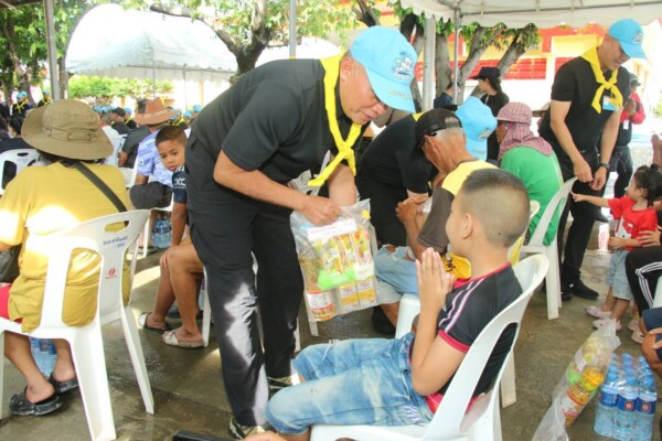 ขึ้นเรือตรวจเยี่ยมและมอบสิ่งของบำรุงขวัญให้ผู้ประสบอุทกภัย (ถุงยังชีพและยารักษาโรค) ณ อบต.ท่าดินแดง อ.ผักไห่ จว.พระนครศรีอยุธยา