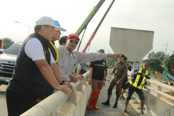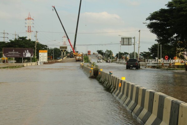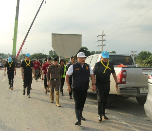 เดินทางมาตรวจติดตามสถานการณ์อุทกภัย บริเวณจุดกลับรถใต้สะพานป่าโมกสะพานข้ามแม่น้ำเจ้าพระยา เป็นเหตุให้น้ำท่วมบริเวณถนนเส้น 33 สุพรรณบุรี-อ่างทอง บริเวณช่วงก่อนขึ้นสะพานทั้งสองฝั่งระยะทางยาวประมาณ 150 เมตร ในพื้นที่ สภ.ป่าโมก จว.อ่างทอง