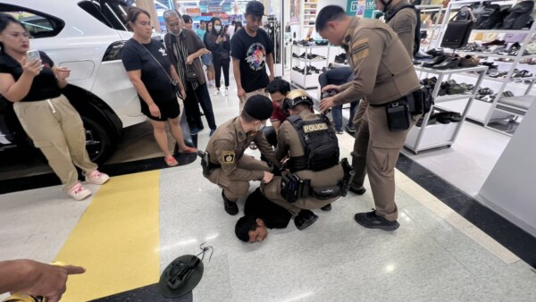 เมื่อเวลาประมาณ 15.30 น.ของวันที่ 09 พฤศจิกายน 2568 ศูนย์วิทยุสถานีตำรวจภูธรกระทุ่มแบน รับแจ้งมีเหตุปล้นทรัพย์ ที่ห้างทองเยาวราช เอ็มโกลด์ ภายในห้างสรรพสินค้าโลตัส กระทุ่มแบน จ.สมุทรสาคร จึงรีบรายงานให้ผู้บังคับบัญชาทราบ โดยทาง พล.ต.ต.ธีรเดช อธิภัคคกุล ผบก.ภ.จว.สมุทรสาคร ได้มอบหมายสั่งการให้ พ.ต.อ.ภคิณ ศิวเมธากุล รอง ผบก.ภ.จว.สมุทรสาคร รรท.ผกก.สภ.กระทุ่มแบน พร้อมด้วย พ.ต.ท.ชุมพล ฉัตร์สงวนชัย รอง ผกก.ป.สภ.กระทุ่มแบน พ.ต.ท.ศักดิ์สิทธิ์ ชูบุญเรือง รอง ผกก.สส.สภ.กระทุ่มแบน เจ้าหน้าที่ตำรวจชุดสืบสวน – ปราบปราม และเจ้าหน้าที่ตำรวจสายตรวจ เข้าตรวจสอบที่เกิดเหตุ ซึ่งเบื้องต้นมีรายงานว่า ภายหลังจากที่คนร้ายลงมือก่อเหตุปล้นทองแล้ว แต่ยังไม่ทันได้หนีออกห้างโลตัส ก็ถูกเจ้าหน้าที่ตำรวจสายสืบฯ ทราบชื่อต่อมาคือ จ.ส.ต.สุกิจ กล้าสงคราม ผบ.หมู่งานสืบสวน สภ.กระทุ่มแบน (เจ้าหน้าที่ตำรวจสืบสวนนอกเครื่องแบบ) ซึ่งกำลังปฏิบัติหน้าที่ตรวจรักษาความสงบเรียบร้อยภายในพื้นที่เกิดเหตุ สามารถเข้ารวบตัวไว้ได้อย่างทันควัน และยังได้พลเมืองดีพร้อมกับเจ้าหน้าที่ตำรวจสายตรวจ มาช่วยกันล๊อคตัวคนร้ายด้วย โดยได้นำตัวคนร้ายไปสอบปากคำที่ สภ.กระทุ่มแบน พร้อมกับอาวุธปืนขนาด 9 มม. (ยี่ห้อก๊อก) แม็กกาซีนที่ตกอยู่หน้าร้านทองพร้อมเครื่องกระสุนปืน และรถจักรยานยนต์ของผู้ต้องหาที่ขับมาจอดไว้หน้าห้างโลตัส