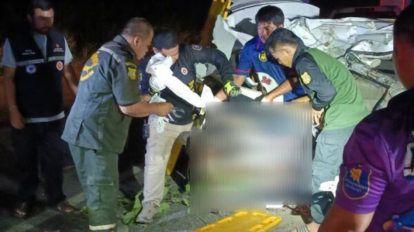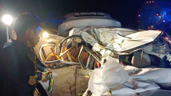 ในที่เกิดเหตุพบรถเก๋งยี่ห้อ toyota สีขาวทะเบียน ขฉ 1640 ชลบุรีเสียหลักลงท้องร่องชนต้นคูนคนขับรถถูกอัดก๊อปปี้ติดภายในเสียชีวิตภายในรถ ทราบชื่อนายอุทัย จตุจันทร์ อายุ 57 ปี อยู่บ้านเลขที่ 78/12 หมู่ที่ 1 ต.สุรศักดิ์ อ.ศรีราชา จ.ชลบุรี สภาพถูกอัดก๊อปปี้สมองแตกแขนขาผิดรูป เจ้าหน้าที่ใช้รถยกขึ้นมาแล้วใช้เครื่องตัดถ่างนำร่างของผู้เสียชีวิตออกมาจากซากรถ ตรวจสอบภายในรถพบบัตรประจำตัวและเงินสด 800 กว่าบาท ตำรวจได้ให้หน่วยกู้ภัยนำศพไปเก็บไว้ที่โรงพยาบาลศรีมหาโพธิเพื่อให้ญาติติดต่อขอรับศพไปบำเพ็ญกุศลต่อไป