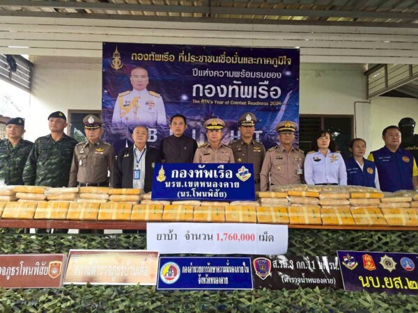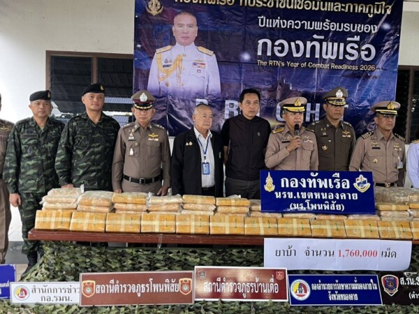 เมื่อวันที่ 7 พ.ย. 68 เวลา 0300 กองทัพบก โดย พล.ท.วีระยุทธ รักษ์ศิลป์ มทภ.2/ผบ.นบ.ยส.24 อำนวยการให้ กกล.สุรศักดิ์มนตรี/สกัดกั้น ฯ ตอนบน/ บก.ควบคุมที่ 2 (ร.13) นรข.เขตหนองคาย โดย หน่วยเรือโพนพิสัย (หน่วยงานหลัก) ขณะปฏิบัติหน้าที่ซุ่มเฝ้าตรวจพื้นที่ บริเวณริมฝั่งแม่น้ำโขง หลังโรงเรียนบ้านพวก บ.พวก ต.บ้านเดื่อ อ.เมืองหนองคาย จ.หนองคาย เจ้าหน้าที่ตรวจพบกลุ่มบุคคลต้องสงสัยและรถยนต์ จำนวน 2 คัน กำลังลำเลียงสิ่งของขึ้นจากริมฝั่งแม่น้ำโขง จนท.จึงแสดงตัวเข้าตรวจสอบ แต่กลุ่มบุคคลดังกล่าวเมื่อเห็นว่าเป็น เจ้าหน้าที่ จึงได้ทิ้งสิ่งของและขับรถหลบหนีไป เจ้าหน้าที่เข้าตรวจพื้นที่พบกระเป๋าต้องสงสัยและกระสอบรวม 6 ห่อ ภายในบรรจุยาเสพติดให้โทษประเภท 1 (ยาบ้า) จำนวนประมาณ 1,760,000 เม็ด เจ้าหน้าที่จึงเร่งประสาน สภ.บ้านเดื่อ และ สภ.โพนพิสัย ให้ไล่ติดตามจับกุมรถยนต์ต้องสงสัยที่หลบหนีไป จนสามารถสืบสวนและติดตามจับกุมผู้ต้องหาได้รวม 3 ของกลางยาเสพติดให้โทษประเภท 1 (ยาบ้า) จำนวน ประมาณ 1,760,000 เม็ด พร้อมรถยนต์ จำนวน 2 คัน ได้นำผู้ต้องหาพร้อมของกลางมาไว้ที่ หน่วยเรือโพนพิสัย เพื่อสอบสวนขยายผลและตรวจนับของกลางโดยละเอียด และจะนำส่งพนักงานสอบสวน สภ.บ้านเดื่อ เพื่อดำเนินคดีตามกฎหมายต่อไป