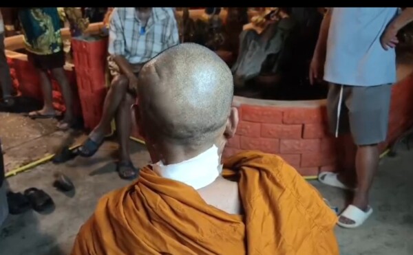 สอบถามนายสุนทร ปลอดภัย อายุ 67 ปี ผู้ที่อยู่ในเหตุการณ์ เล่าให้ฟังว่า ขณะที่ตนเองเดินอยู่ด้านหน้าวัดก็ได้ยินเสียงคนคุยกันรุนแรงโดยตนร้องตะโกนสอบถามว่ามีอะไรกัน ตนเองเลยเดินเข้าไปดูก็เห็นผู้ก่อเหตุกำลังจะจับพระอาจารย์ เจ้าอาวาสวัดกดลงบ่อน้ำในมือก็ถือเคียวไว้ ตนเองก็เลยเข้าไปช่วยกันดึงแล้วก็ห้าม ดึงตัวพระอาจารย์ออกมา เห็นพระอาจารย์มีบาดแผลที่คอชาวบ้านจึงรีบพาพระส่งรักษาตัวที่ รพ. เป็นการด่วน