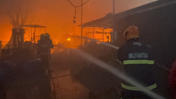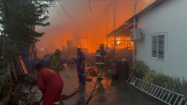 นายประเสริฐ ชูเกตุ หัวหน้างานป้องกันและเบาเทาสาธารณภัยเทศบาลบางเสาธง บอกว่า หลังจากที่ได้รับแจ้งเหตุและรีบเดินทางมาถึงที่เกิดเหตุพบว่า ไฟลุกไหม้รุนแรงมาจากด้านหลัง ซึ่งมีกลิ่นแอมโมเนียฟุ้งกระจายหนัก จึงให้นักดับเพลิงลุยดับไฟจากด้านหลังเข้ามายังด้านในเพื่อความปลอดภัยเกี่ยวการสารเคมีรั่วไหล อีกทั้งพอไปตรวจสอบภายในร้านรับซื้อของเก่าแห่งนี้ยังพบถังพลาสติกขนาด 200 ลิตรอีกจำนวน ซึ่งไม่ทราบว่าเป็นถังที่เคยบรรจุสิ่งใดมาจึงต้องกระจายกำลังนักดับเพลิงฉีดน้ำคุมเพลิงให้ครอบคลุมพื้นที่กระทั่งสามารถที่จะควบคุมสถานการณ์เอาไว้ได้