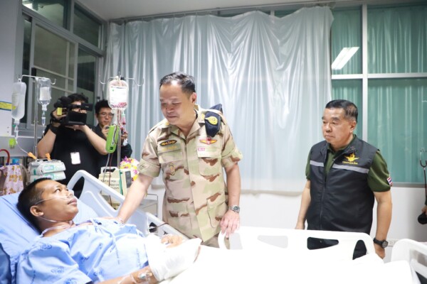 นายกรัฐมนตรี ได้กล่าวให้กำลังใจแก่ทหารทุกนาย พร้อมยกย่องในความกล้าหาญ ความเสียสละในการปฏิบัติหน้าที่เพื่อปกป้องอธิปไตยของชาติ พร้อมมอบดอกไม้และสิ่งของเพื่อเป็นขวัญและกำลังใจแก่ผู้บาดเจ็บ ฝากความห่วงใยถึงครอบครัวของกำลังพลทุกนาย และยืนยันว่ารัฐบาลจะให้การดูแลช่วยเหลืออย่างเต็มที่ ทั้งในด้านการรักษาพยาบาลและสวัสดิการ เพื่อให้ทหารทุกนายได้รับการดูแลอย่างดีที่สุดในนามของประเทศชาติ
