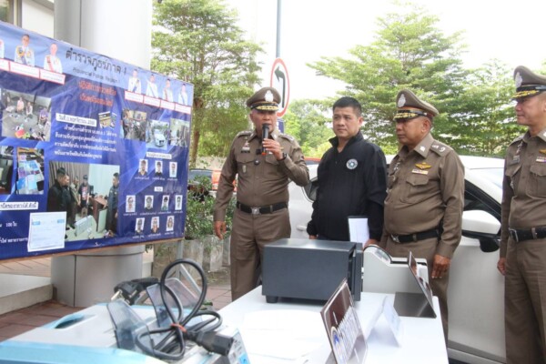 และเจ้าหน้าที่ตำรวจที่เกี่ยวข้องร่วมกันแถลงผลการปฏิบัติการ “ กวาดล้างเว็บพนันออนไลน์และปราบสแกมเมอร์ ” จำนวน 2 คดีสำคัญ