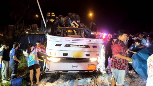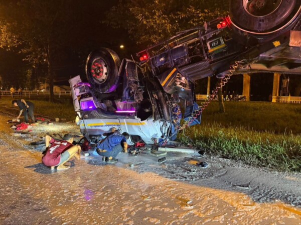 รถ18ล้อพลิกคว่ำติดภายใน ยูเทิร์นพระเพลง ต.นาสาร อ.พระพรหม จ.นครศรีธรรมราช