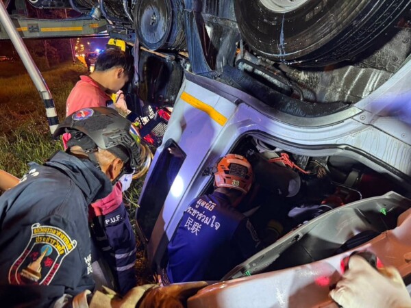 14 พ.ย. 68 เวลา 20.27 น. ศูนย์วิทยุมูลนิธิประชาร่วมใจ รับแจ้งเหตุ รถบรรทุก 18 ล้อพลิกคว่ำ บริเวณ ยูเทิร์นพระเพลง ต.นาสาร
