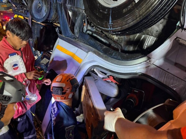 กำลังเร่งดำเนินการช่วยเหลือ เพื่อเปิดทางนำผู้ขับขี่ออกจากตัวรถโดยเร็วที่สุด