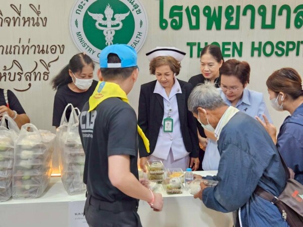 คณะเจ้าหน้าที่ได้ลงพื้นที่ โรงพยาบาลเถิน อำเภอเถิน จังหวัดลำปาง เพื่อมอบอาหารพร้อมน้ำดื่มจำนวน 200 ชุด ให้แก่ผู้ป่วยและญาติผู้ป่วยที่มารับบริการภายในโรงพยาบาล สร้างรอยยิ้มและเป็นกำลังใจให้ผู้ที่กำลังรักษาตัว รวมถึงผู้มาเยี่ยม