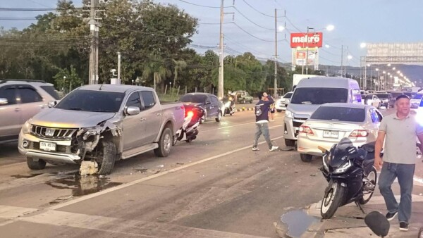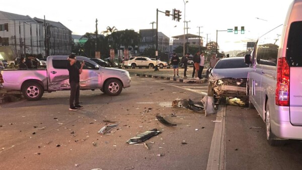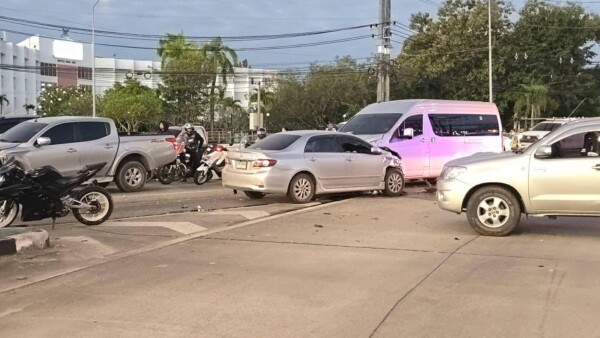 ตาก-เกิดอุบัติเหตุหมู่รถชนกัน 5 คัน แยกไฟแดงโรบินสันแม่สอด ไม่มีผู้บาดเจ็บ