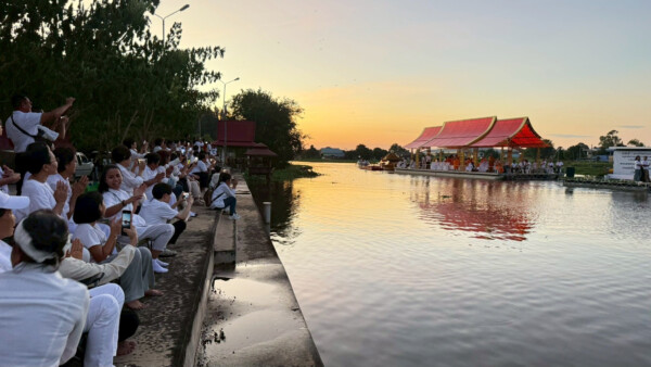 จากนั้นนายณัฐพงษ์ สงวนจิตร ผู้ว่าราชการจังหวัดสุพรรณบุรี ประกอบพิธีอัญเชิญเครื่องสักการะบูชาพระมงคลเทพมุนี (สด จนฺทสโร) ทางสายน้ำ ขบวนอัญเชิญฯ เคลื่อนออกจากริมเขื่อนตลาดบางลี่ อเภอสองพี่น้อง โดยขบวนนาวาบูชาธรรม เคลื่อนมาตามคลองสองพี่น้อง ขบวนนำโดย รัตนนาวาบูชาธรรม ตามด้วยแพชีวประวัติตามเส้นทางพระผู้ปราบมาร ประดับตกแต่งด้วย ดอกไม้ น้ำพุ น้ำตก ระหว่างเคลื่อนขบวน จะบอกเล่าเรื่องราวเกี่ยวกับประวัติและการประกอบคุณงามความดีของพระเดชพระคุณหลวงปู่ ผ่านบทกวี ในหลายรูปแบบ ตั้งแต่ บทกลอน, การขับเสภา, เพลงพื้นบ้าน และ อื่น ๆ ชมวิถีชีวิตของชาวบ้านสองริมคลองสองพี่น้อง ที่ยังอนุรักษ์วิถีชีวิตในอดีต ในขบวนมีปราชญ์ชาวบ้านมาขับเสภา นักเรียนโชว์การแสดงเพลงเรือ ขบวนล่องไปจนถึงท่าน้ำวัดสองพี่น้อง ระยะทางประมาณ 2.8 กม.