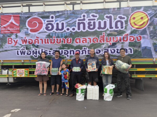 ปทุมธานี พ่อค้าแม่ค้าตลาดสี่มุมเมืองระดมความช่วยเหลือผู้ประสบภัยน้ำท่วมหาดใหญ่