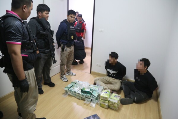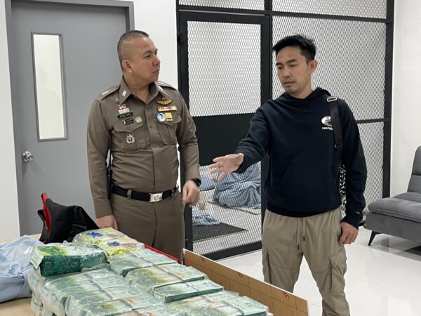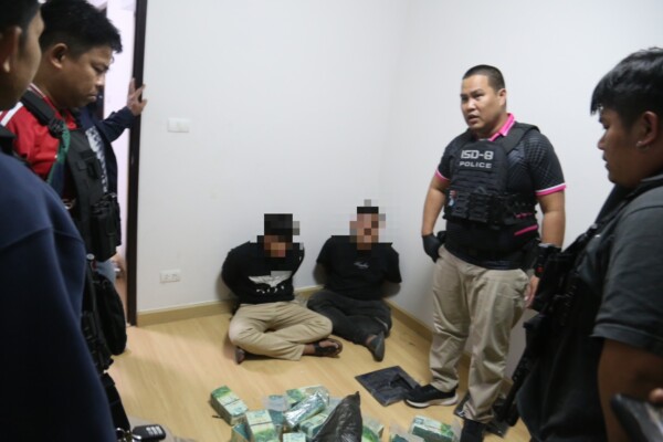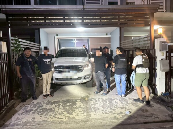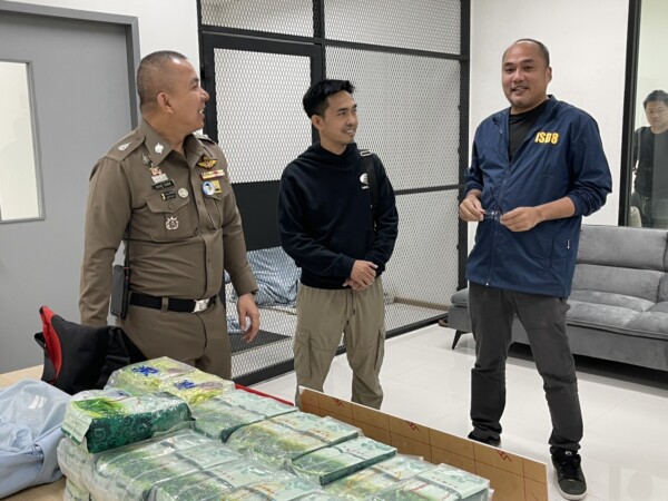 ต่อมาวันที่ 26 พฤศจิกายน 2568 เวลาประมาณ 03.10 น. ได้พบรถยนต์ ยี่ห้อ ISUZU รุ่น MU-X สีดำ ขับมาจอดหน้าบ้าน พบนายไกรธวัช หรือตั๊ก (สงวนนามสกุล) ผู้ต้องหาที่ 1 เป็นผู้ขับขี่ และพบนายนพรัตน์ หรือเจิน (สงวนนามสกุล) ผู้ต้องหาที่ 2 นั่งข้างคนขับ โดยผู้ต้องหาทั้งสองได้เปิดประตูลงมาจากรถ เจ้าหน้าที่ตำรวจชุดจับกุมจึงเข้าแสดงตัวเป็นเจ้าหน้าที่ตำรวจ และเจ้าพนักงาน ป.ป.ส.ขอทำการตรวจค้นภายในบ้านพัก โดยมีเหตุอันควรสงสัยว่าภายในบ้านอาจมียาเสพติดซุกซ่อนอยู่ ซึ่งผู้ต้องหายินยอมให้ทำการตรวจค้น และเป็นผู้นำตรวจค้น ผลการตรวจค้นพบยาไอซ์ จำนวน 6 ถุง น้ำหนักถุงละประมาณ 1 กิโลกรัม รวมน้ำหนักประมาณ 6 กิโลกรัม และยาเค จำนวน 29 ถุง น้ำหนักถุงละประมาณ 1 กิโลกรัม รวมน้ำหนักประมาณ 29 กิโลกรัม อยู่บริเวณห้องชั้น 2 ของตัวบ้าน เจ้าหน้าที่ตำรวจชุดจับกุมจึงได้แจ้งสิทธิตามกฎหมายและข้อกล่าวหาดังกล่าว จับกุมและควบคุมตัวผู้ต้องหาทั้ง 2 พร้อมของกลางส่งดำเนินคดีตามกฎหมาย