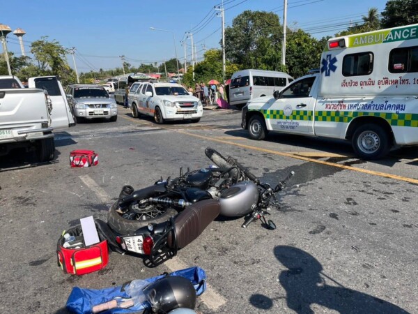 อุบัติเหตุหมู่ รถยนต์กระบะ รถยนต์ตู้ รถยนต์เก๋ง และรถจักรยานยนต์ จำนวนหลายคัน บาดเจ็บ 15 ราย ที่ลพบุรี