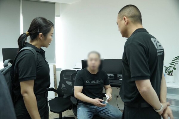 โดยในการเข้าตรวจค้น เจ้าหน้าที่ชุดจับกุมได้แสดงตัวเป็นเจ้าหน้าที่ตำรวจและขอทำการตรวจสอบเอกสารประจำตัวและใบอนุญาตทำงานและสอบถามผู้ต้องหาผ่านล่ามแปลภาษา ทราบว่ากลุ่มผู้ต้องหาดังกล่าวมีการลักลอกเข้ามาทำงานในบริษัทฯ ภายในประเทศไทยโดยไม่ได้รับอนุญาต จึงได้จับกุมตัวผู้ต้องหาทั้งหมด ส่งพนักงานสอบสวน สน.บางโพงพาง และ สน.ลุมพินี เพื่อดำเนินคดีตามกฎหมายต่อไป ในส่วนของอุปกรณ์คอมพิวเตอร์, โทรศัพท์มือถือ และอุปกรณ์อื่นๆ ซึ่งเชื่อว่าอาจใช้ในการกระทำความผิดหลอกลวงเหยื่อจะได้ทำการตรวจสอบและดำเนินการสืบสวนขยายผลต่อไป