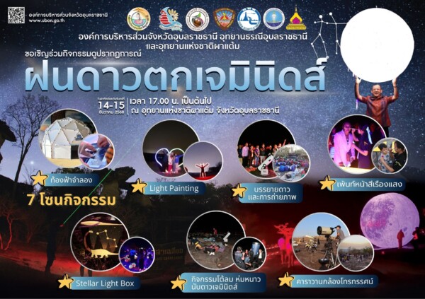 อบจ.อุบลฯ ขอเชิญร่วมกิจกรรมดูปรากฏการณ์ ฝนดาวตกเจมินิดส์ นับ 1,000 ดวง ลอดอุโมงค์ข้ามกาลเวลา สัมผัสมนต์เสน่ห์ท้องฟ้าผาแต้มยามค่ำคืน
