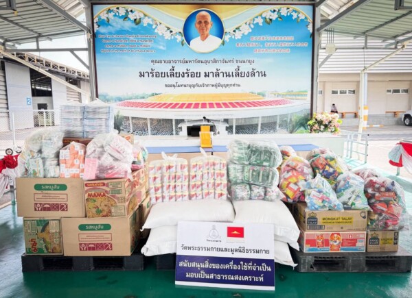ปทุมธานี วัดพระธรรมกายส่งเครื่องอุปโภคบริโภคช่วยผู้ได้รับผลกระทบเหตุชายแดนไทย–กัมพูชา